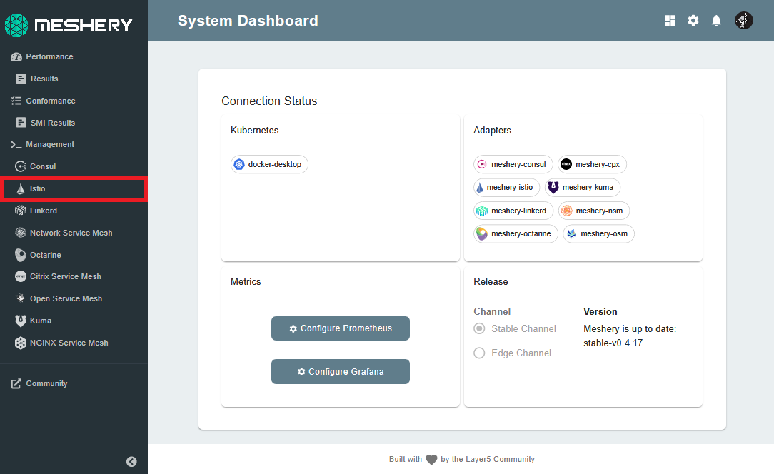 - Learn more about Meshery Adapters.