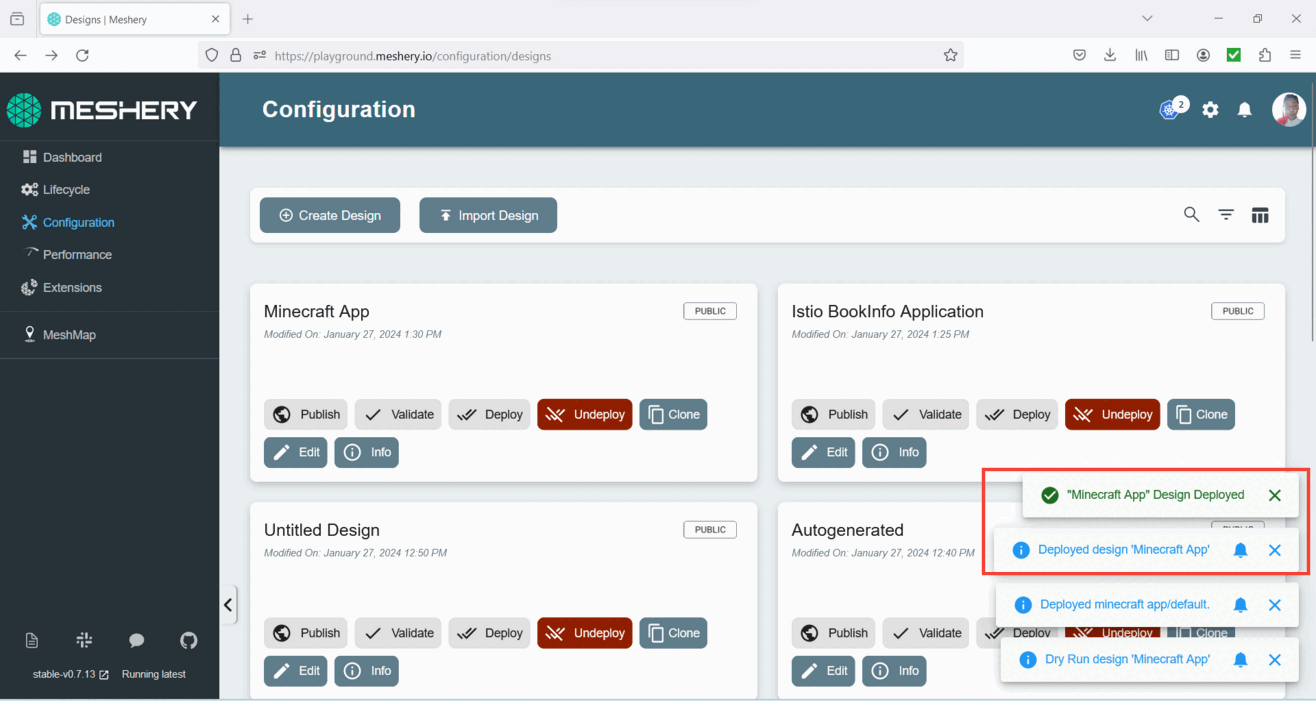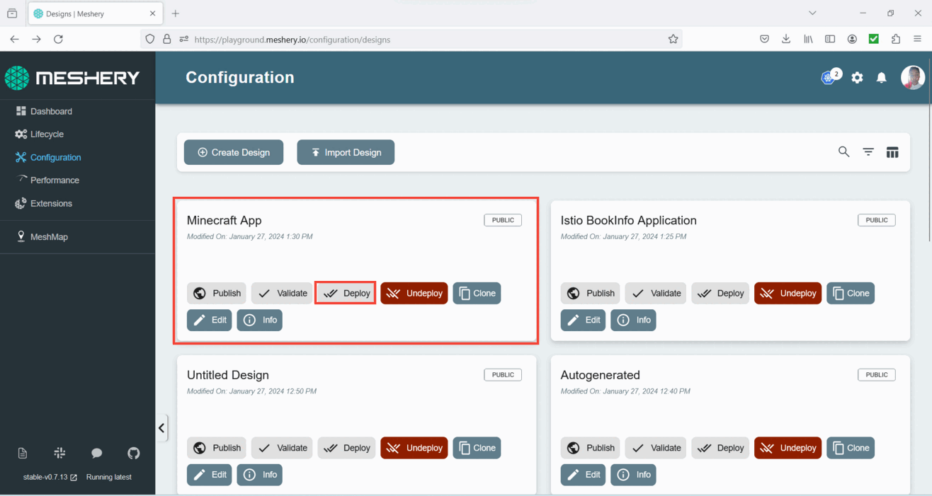 - Once logged in, navigate to the Meshery Playground dashboard.