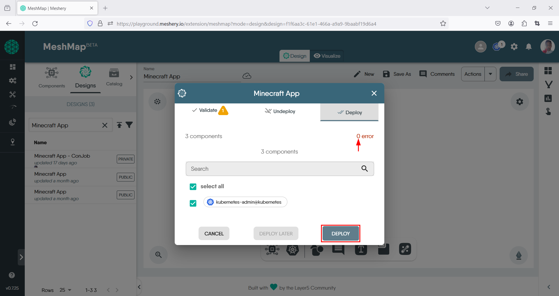 In the pop-up window, review and correct any errors as necessary. Then, click the deploy button.