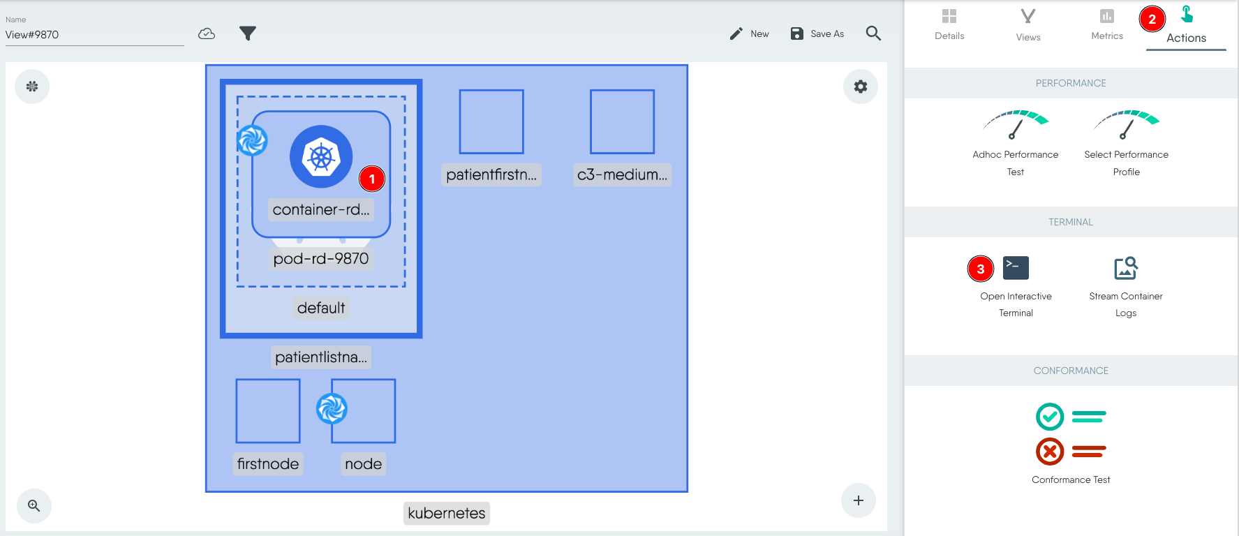 - Select the Pod (or container). If you have multiple containers in a pod, select a container.