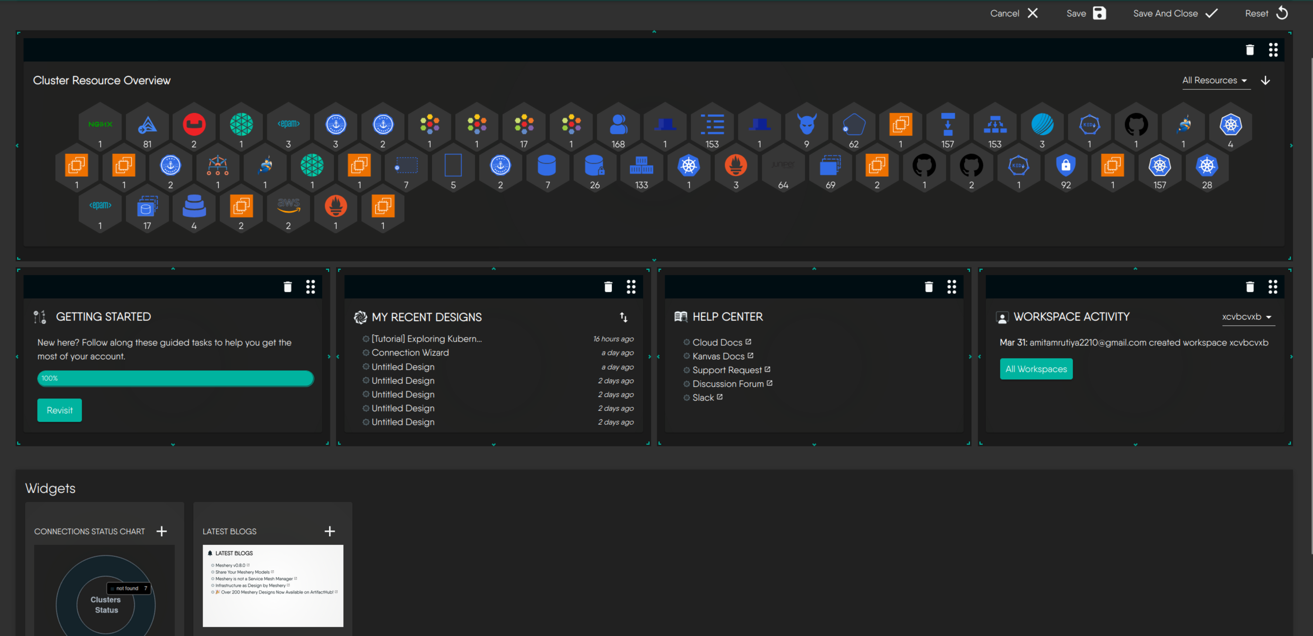 Meshery’s dashboard is a composable and extensible interface made up of individual widgets. These widgets allow contributors to surface specific Meshery data or capabilities within a modular layout system.